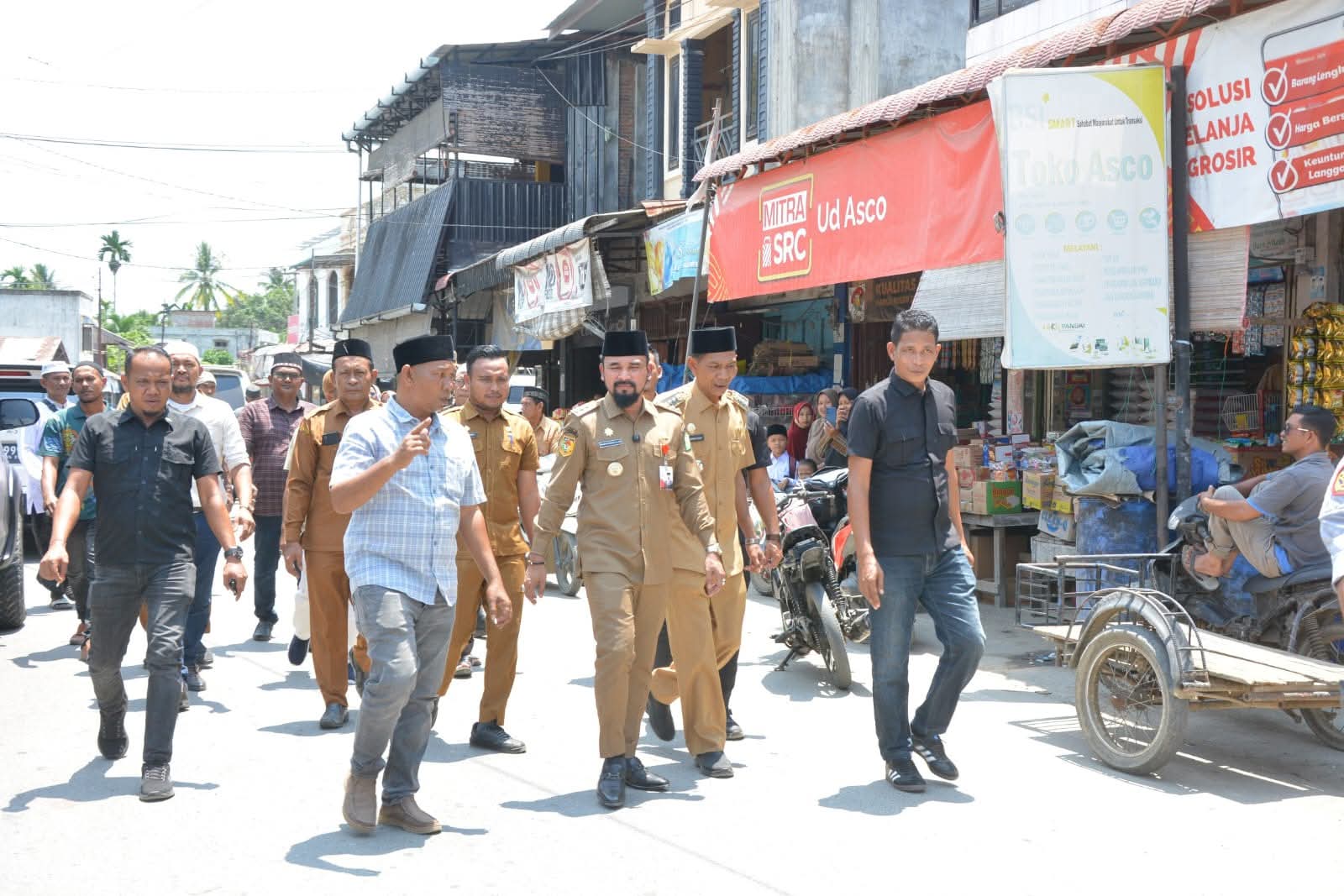 Aceh Timur – Bupati Aceh Timur, Iskandar Usman Al-Farlaky, S.H.I., M.Si, meninjau langsung pasar rakyat yang terletak di pusat Keude Simpang Ulim, Senin (22/9/2025). Dalam kunjungannya, Bupati didampingi Plt. Kadis Perdagangan Koperasi dan UKM, Camat Simpang Ulim, serta sejumlah tokoh masyarakat setempat.