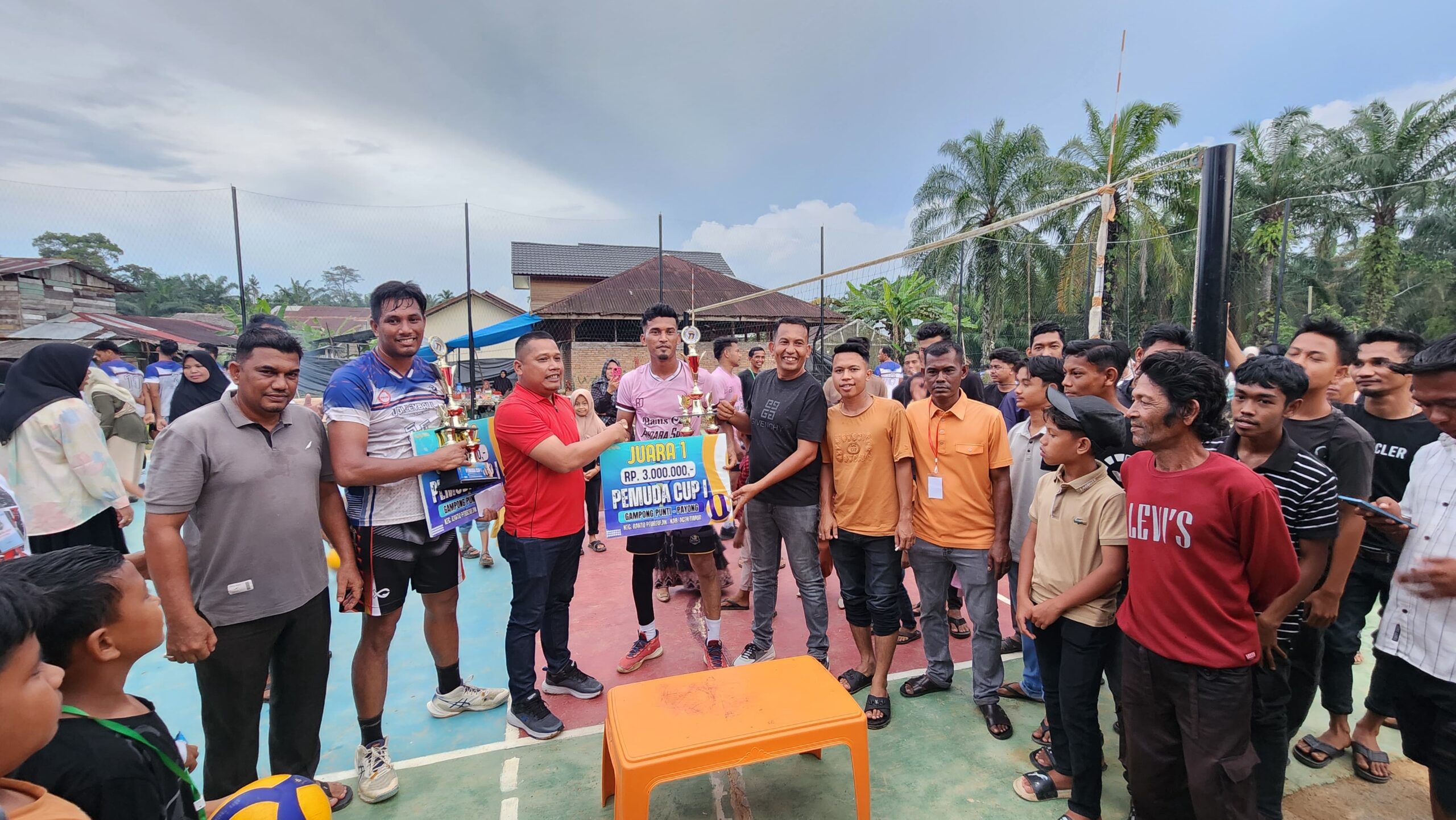 Haji Maop memberikan apresiasi kepada Desa Punti Payong yang telah berhasil menyelenggarakan Turnamen Bola Voli Pemuda CUP 1 ini.