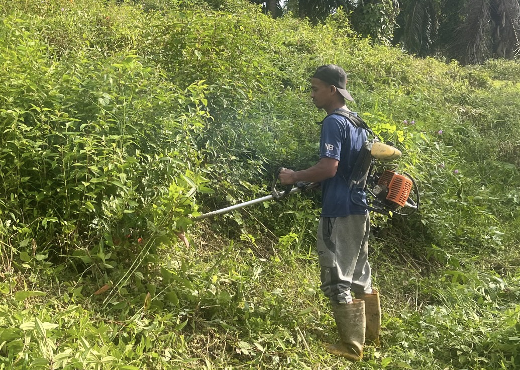 “Alhamdulillah gotong royong ini kita lakukan untuk membersihkan rumput-rumput liar di sepanjang tanggul jalan desa menjelang hari Lebaran, agar tampak asri dan indah”, ujar Keuchik Murdha.