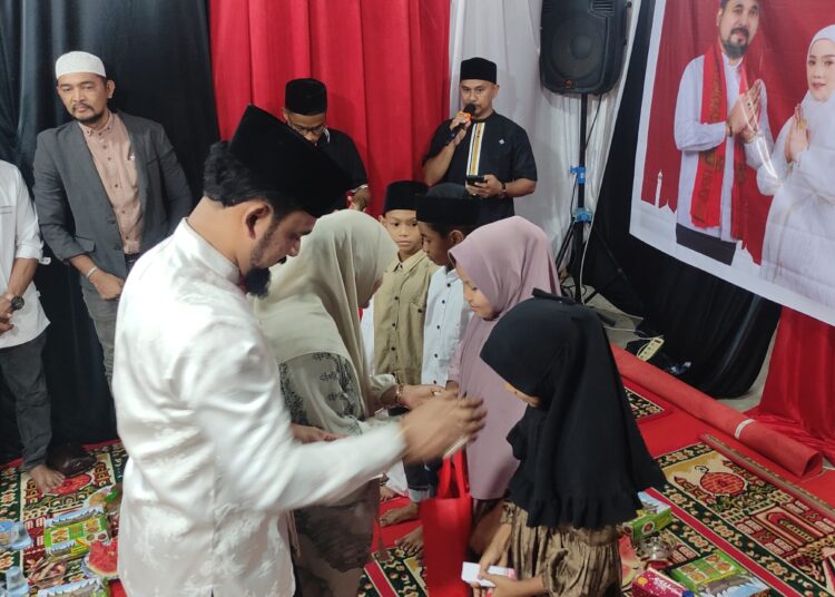 Aceh Timur | Ibu Tim Penggerak Pemberdayaan Kesejahteraan Keluarga (TP PKK) Aceh Timur, Lismawani Hasbi yang juga istri Bupati Aceh Timur Iskandar Usman Al-Farlaky menjamu sebanyak 250 perwakilan anak yatim untuk berbuka puasa bersama, Jumat, 21 Maret 2025.