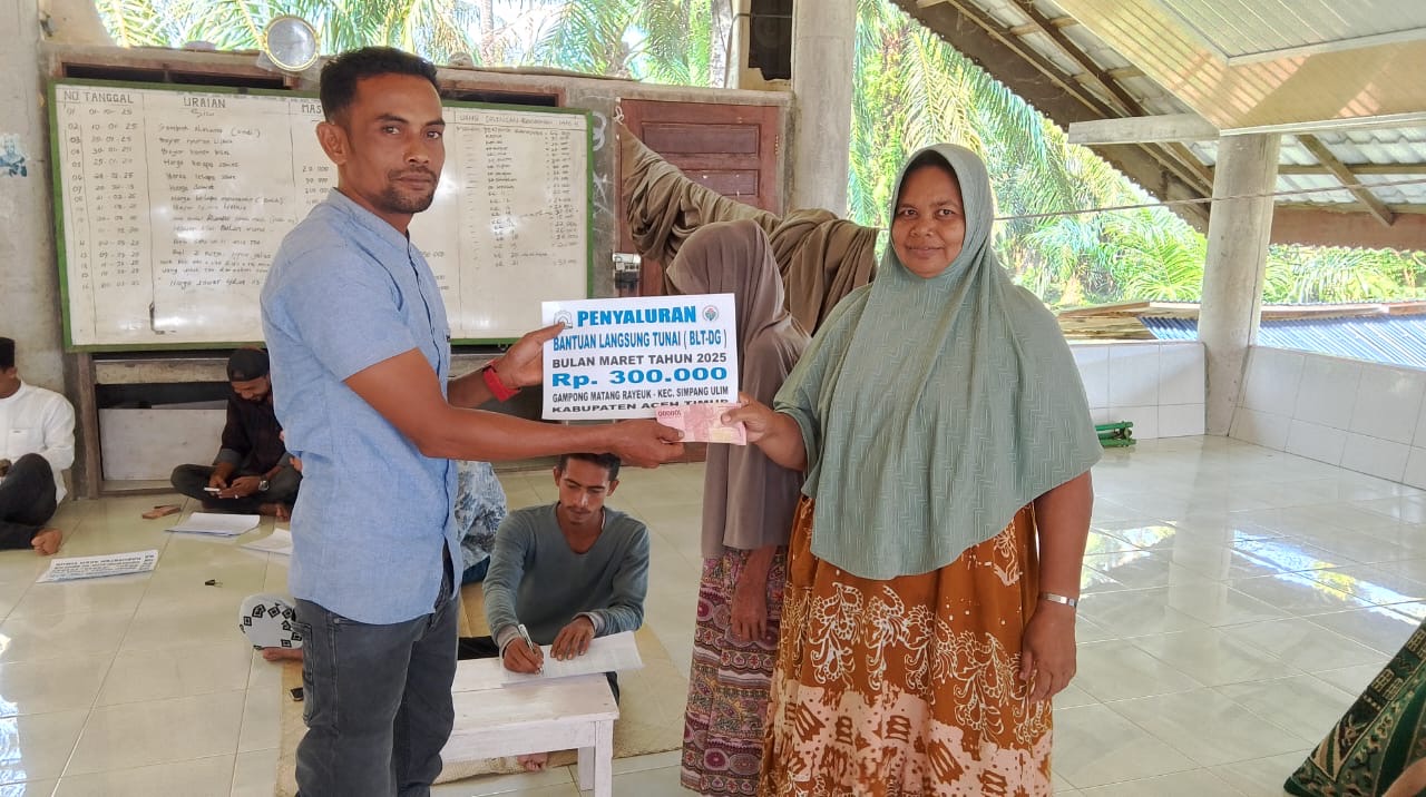 Aceh Timur | Pemerintah Desa matang Rayeuk, Kecamatan Simpang Ulim, Aceh Timur melaksanakan penyerahan Bantuan Langsung Tunai – Dana Gampong (BLT-DG) tahap I Bulan Maret tahun 2025.