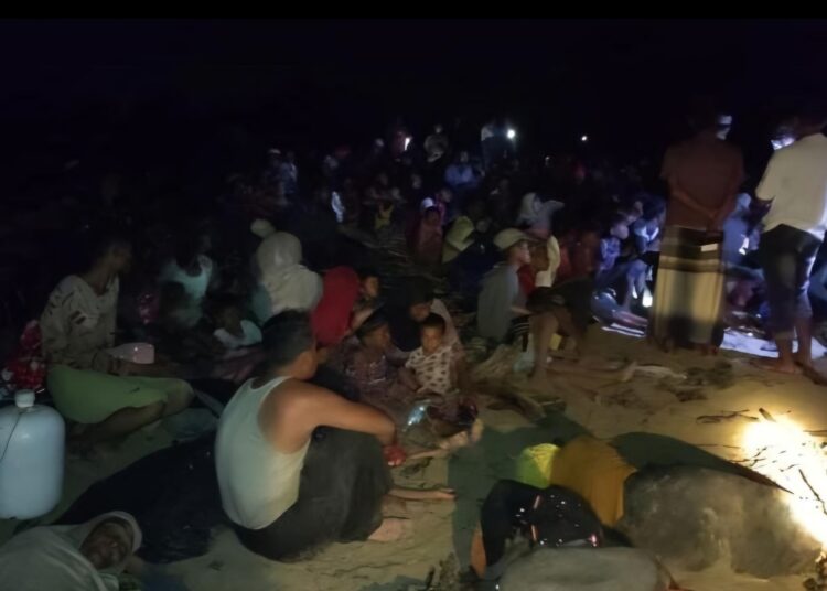 Aceh Timur | Lebih dari Seratus imigran gelap asal Rohingya kembali mendarat di pesisir pantai Alue Bu Tuha, Kecamatan Peureulak Barat, Aceh Timur, pada Sabtu (5/1). Kelompok tersebut terdiri dari pria, wanita, dan anak-anak yang diduga melakukan perjalanan panjang menggunakan perahu sehingga sampai ke pantai Alue Bu Tuha.